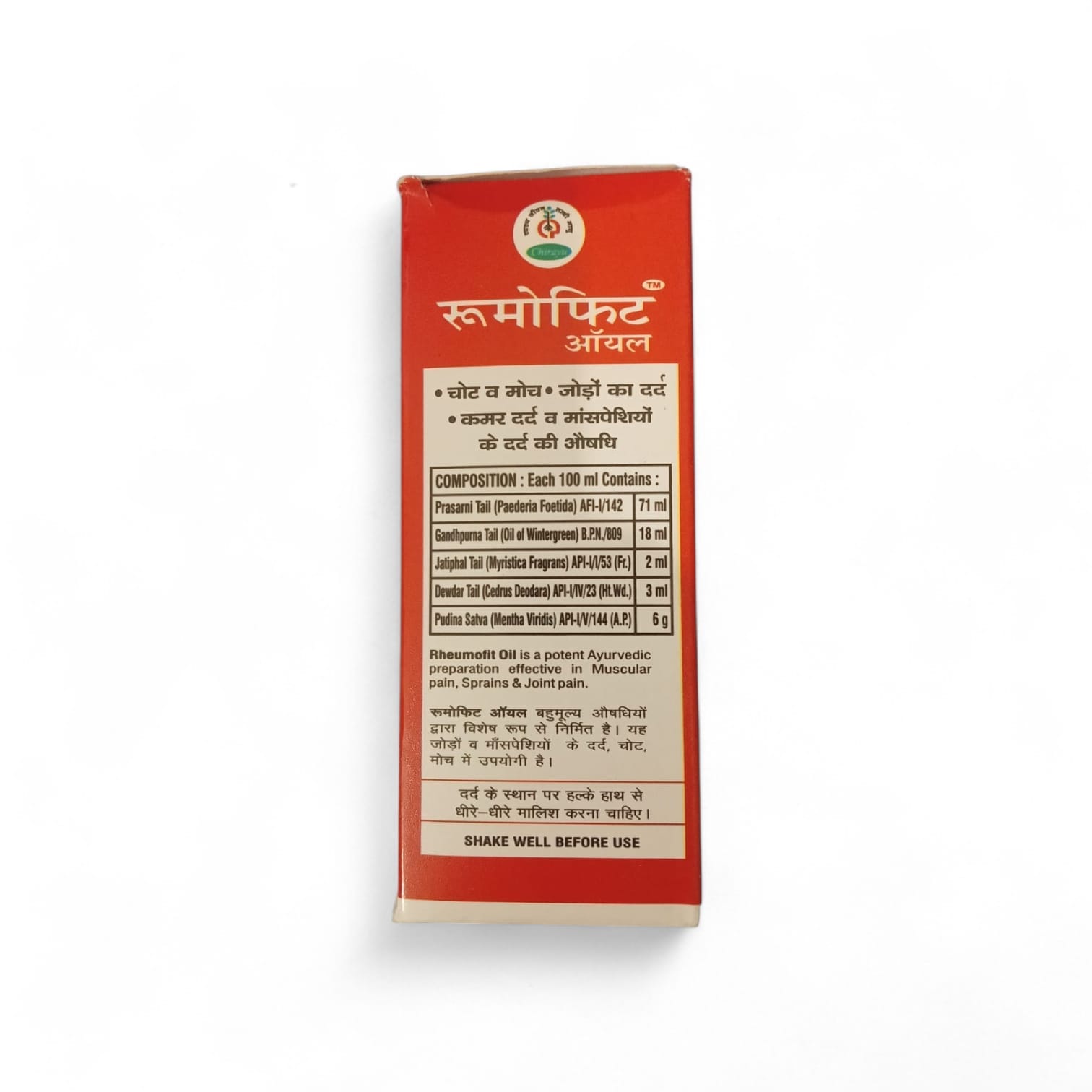 - Rheumofit oil is an ayurvedic preparation formulated for external application on areas affected by muscular discomfort and joint stiffness.