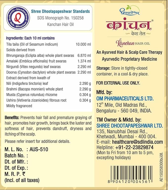 Dhootapapeshwar Kanchan Hair Oil Pack 1 (100ml)