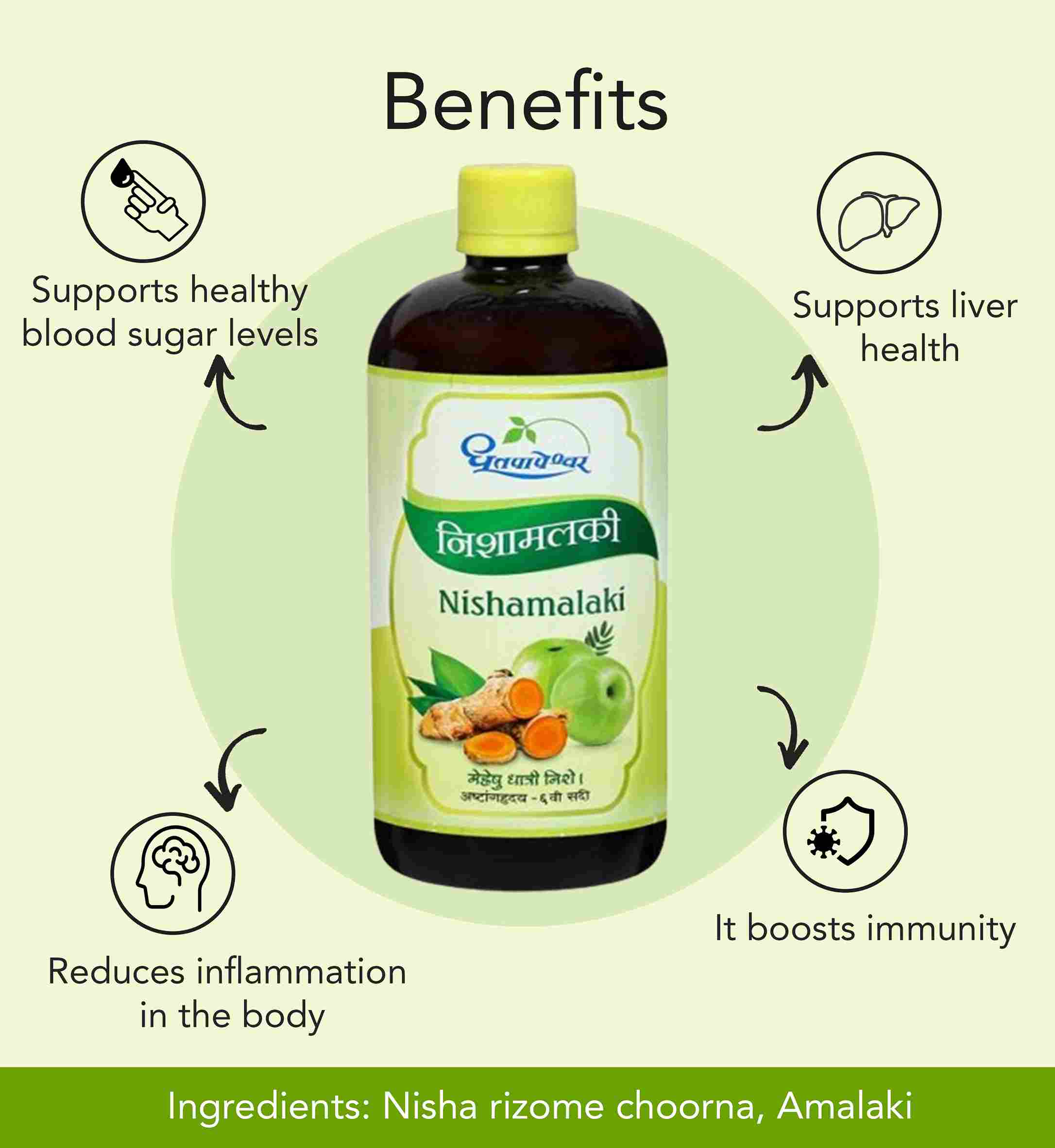 - Nishamalaki tablet helps support balanced blood sugar levels, contributes to overall skin health, provides antioxidant support, supports digestive health, promotes liver wellness, enhances natural defense mechanisms, and supports cardiovascular wellness