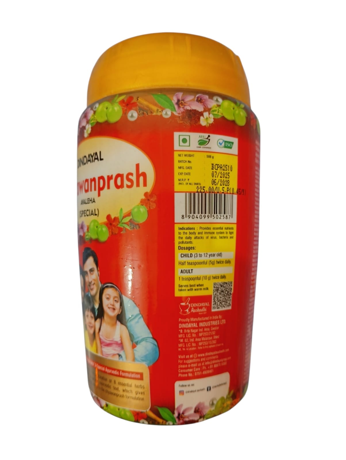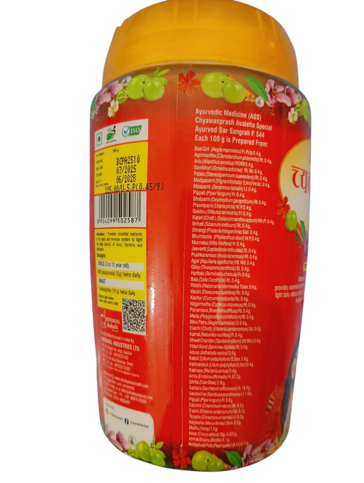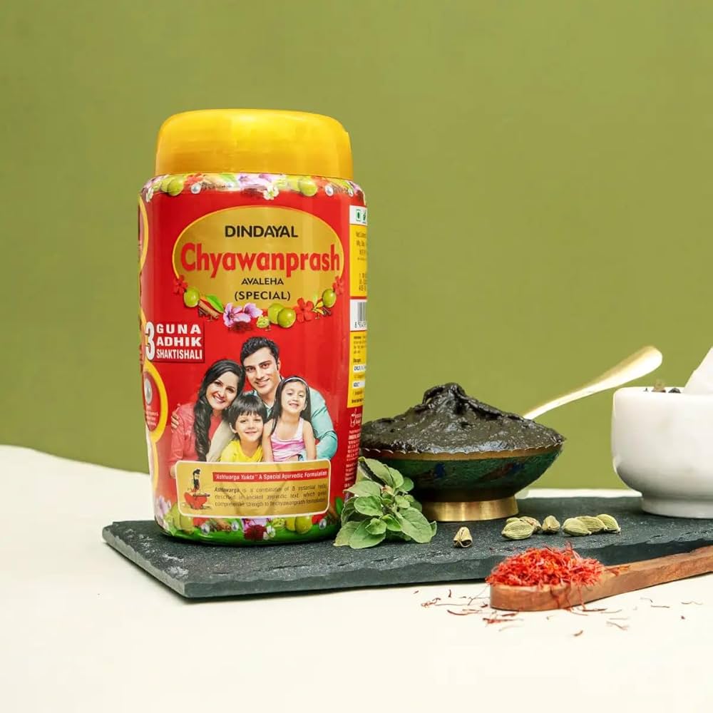 Dindayal Chyawanprash Avaleha (Special) is an age-old Ayurvedic health supplement popularly known for its immune system strength and general vitality booster. It is enriched with natural Vitamin C and antioxidants from rare herbs, fruits and ingredients. When taken on a regular basis, it boosts the body’s immunity to coughs, cold and infections. It is also known to improve digestion, skin health and overall strength. Its formula is supportive to the Cardiovascular system and also cleanses the blood so it is a Complete Health Tonic.