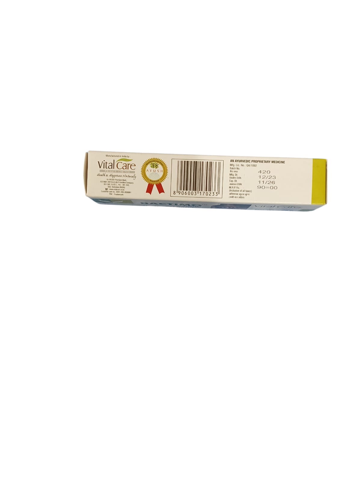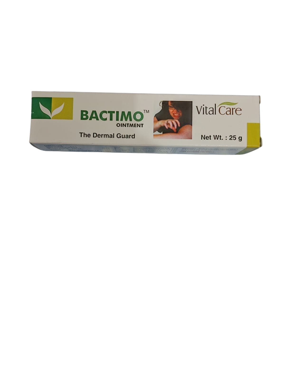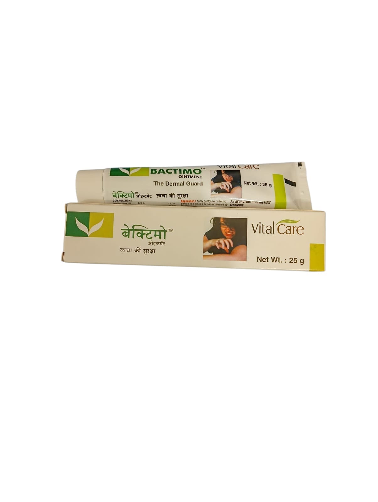 Bactimo Ointment is an ayurvedic medicine that is primarily used for the treatment of Itching, Eczema, Skin Rash, Skin Infections, Dermatitis and Cracked hand skin. The key ingredients of Bactimo Ointment are Turmeric, Manjishtha, Neem, Tulsi, Shuddha Gandhak, Bakuchi, Aloe vera and Chakramarda.