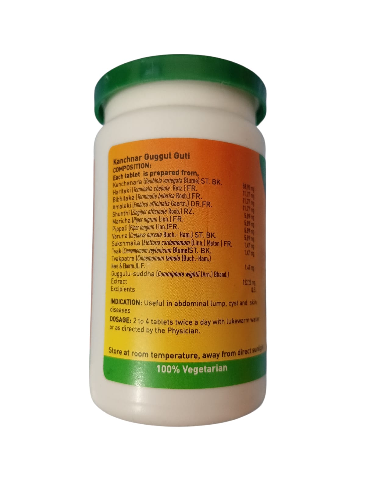 Zandu Kanchnar Guggul Guti Tablet 80 is used for supporting a healthy digestive system. Zandu Kanchnar Guggul Gutika Tablet is an ayurvedic formulation that blends traditional herbs, with Kanchnar (Bauhinia variegata) and Guggul (Commiphora mukul) being the key ingredients. This combination has been valued in Ayurveda for its support in maintaining metabolic balance and promoting internal cleansing. Kanchnar, known for its natural properties, works synergistically with Guggul, which is revered for its ability to promote wellness. The tablets are formulated to assist in balancing the Kapha dosha, which is often linked to sluggish metabolism and accumulation of unwanted substances in the body.
